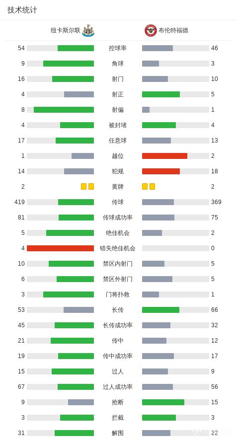 第23分钟,纽卡率先打破僵局,博特曼头槌破门,纽卡1-0布伦特福德
