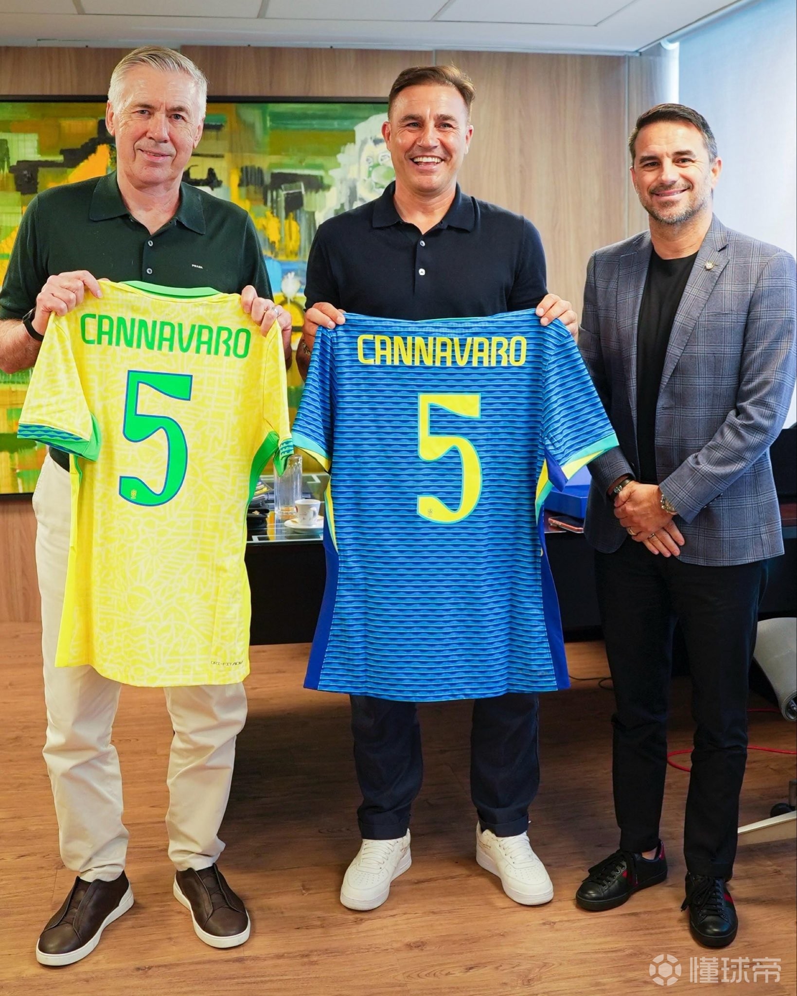 巴西足协官方分享了卡纳瓦罗造访巴西足协的照片。