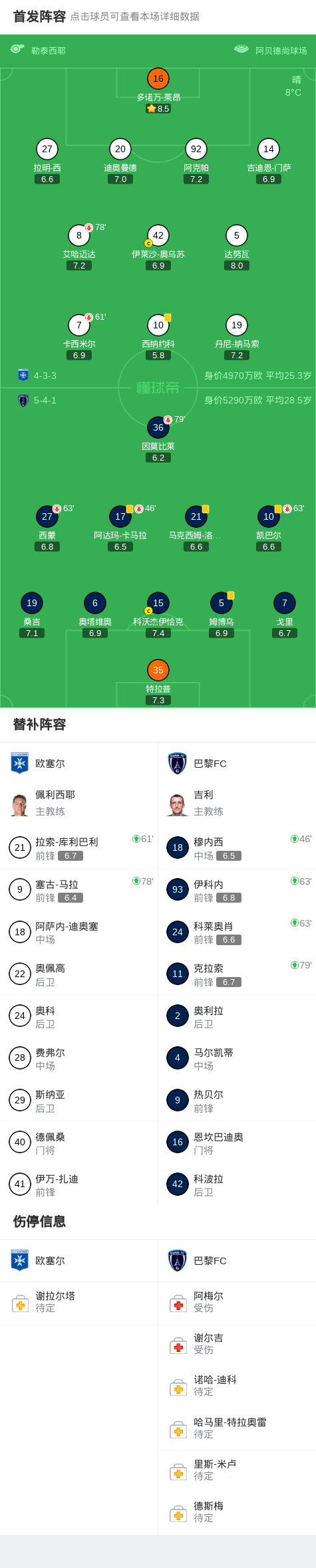 北京时间2月9日法国足球甲级联赛第21轮,欧塞尔主场迎来巴黎FC的挑战。全场比赛结束,双方均未能攻破对手球门,最终欧塞尔与巴黎FC战成0-0平。