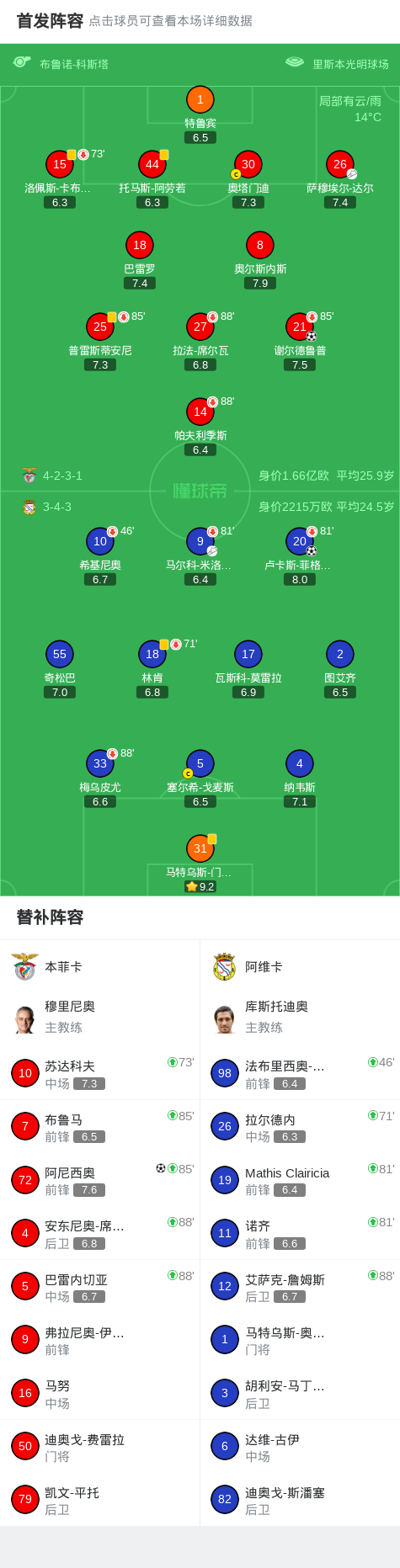 北京时间2月9日葡萄牙足球超级联赛 联赛 第21轮,本菲卡主场对阵阿维卡。本菲卡谢尔德鲁普破门,阿尼西奥破门。阿维卡卢卡斯-菲格雷多破门。最终比分本菲卡 2-1 阿维卡。