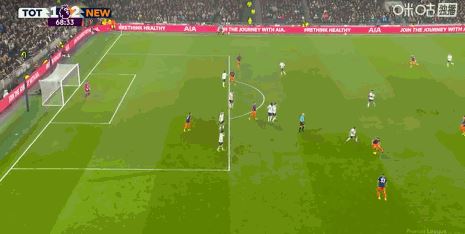 第45+5分钟,打破僵局,佳夫门前补射得分,纽卡1-0