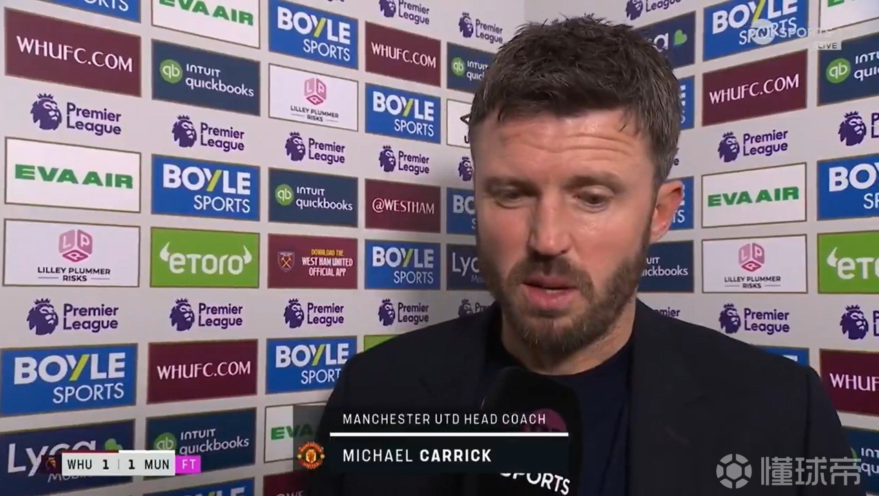 率队在英超第26轮1-1绝平西汉姆联后,曼联主帅迈克尔-卡里克接受了TNT体育的采访。
