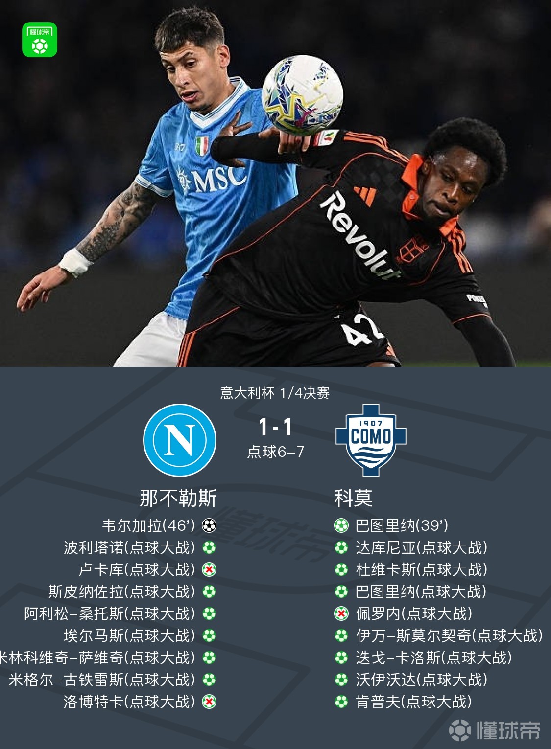 点球大战第八轮:洛博特卡失点,科莫闯入意大利杯4强