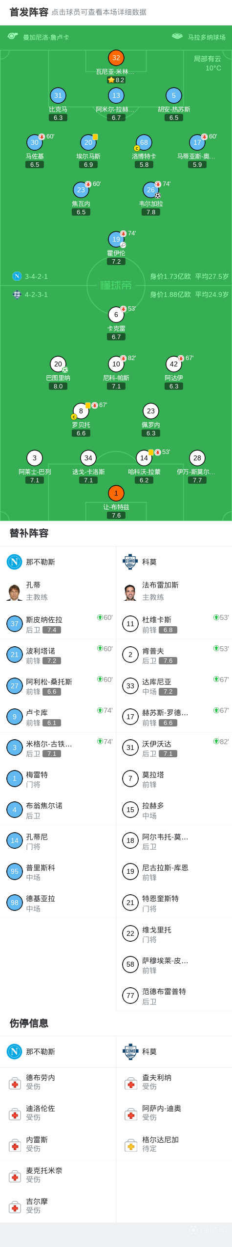第39分钟,奥利韦拉送点,巴图里纳主罚命中,那不勒斯0-1