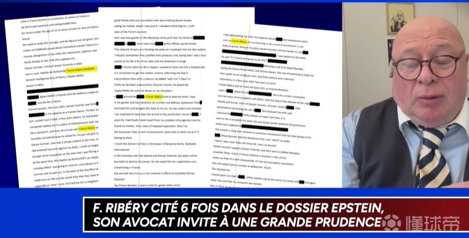 据RMC报道,里贝里因出现在爱泼斯坦案卷宗中而再次成为新闻焦点。他的律师布鲁萨今天早些时候在BFM TV电视台谴责这是一场“陷害”。当晚,布鲁萨再次受邀做客该节目,在得知指控这位前拜仁慕尼黑球员的女性姓名后,他决定采取更具体的行动,提起诉讼。