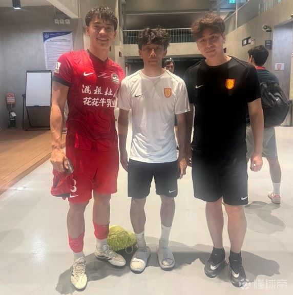 河南队后卫周缘德晒与重庆铜梁龙后卫晋鹏翔、和晓强合照,三人曾在2024赛季帮助大连英博冲超。