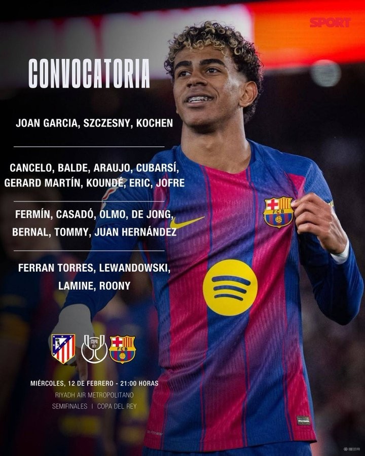 北京时间明天凌晨4点,巴萨将迎来国王杯半决赛首回合客场对阵马竞的比赛,赛前,巴萨官方公布了球队的大名单,其中拉菲尼亚、拉什福德因伤缺席。