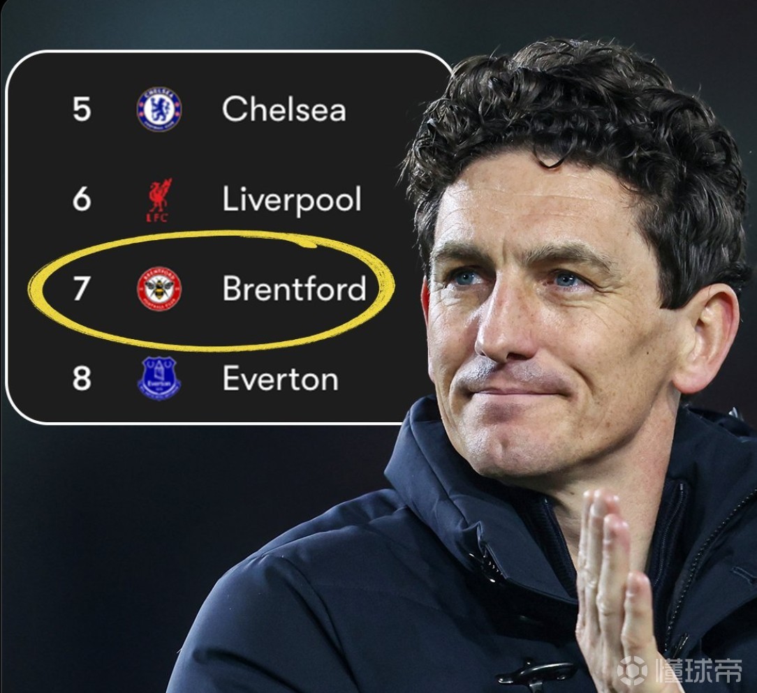 1-1逼平领头羊阿森纳之后,布伦特福德排在英超第7,距离欧冠区仅5分之差,展现出极强的竞争力。