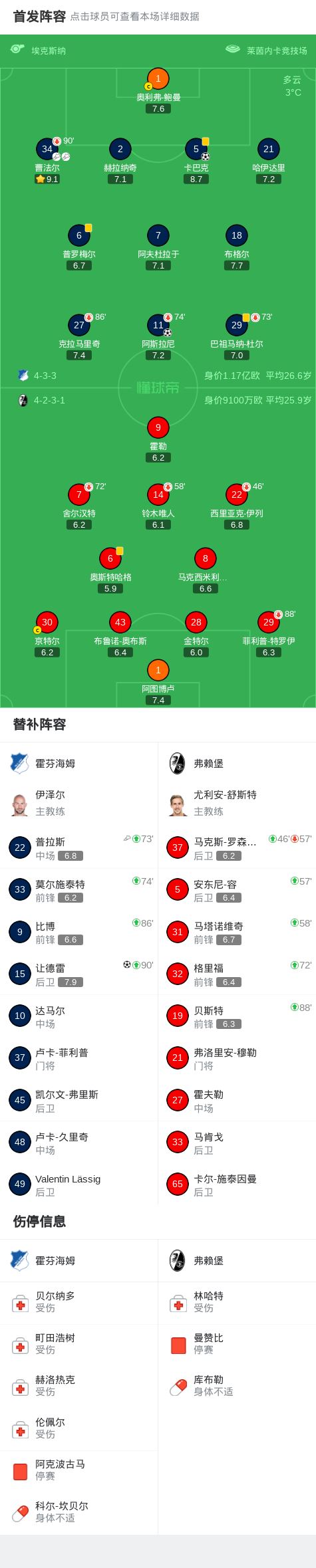 北京时间2月14日德国足球顶级联赛 联赛 第22轮,霍芬海姆主场对阵弗赖堡。霍芬海姆阿斯拉尼破门,卡巴克破门,让德雷破门。最终比分霍芬海姆 3-0 弗赖堡。