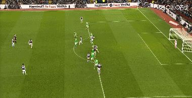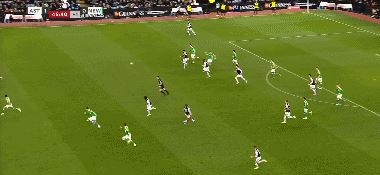 第36分钟,巴恩斯突入禁区,小角度射门击中立柱