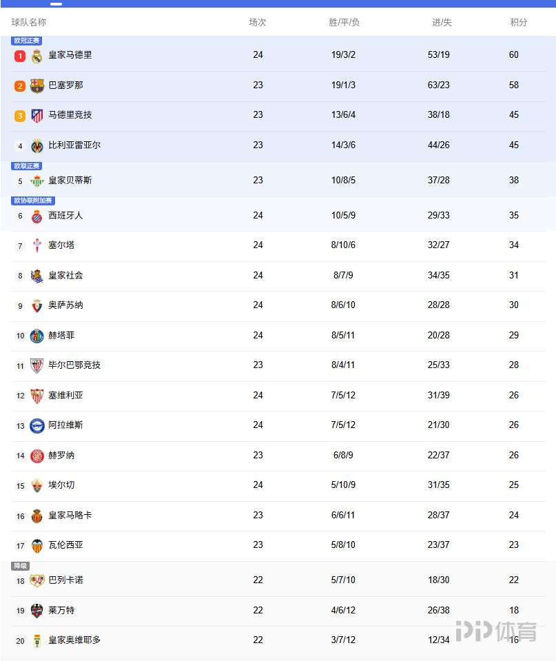 本轮西甲,皇马4-1击败皇家社会,先赛暂登榜首,以2分优势领跑。本轮巴萨还未赛,巴萨将客场挑战赫罗纳。