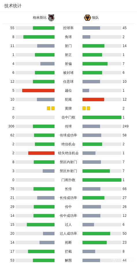 第60分钟,圣地亚哥-布埃诺门前抢射得手,狼队1-0领先格林斯比