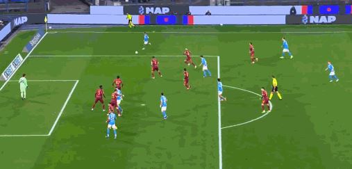 第40分钟,扳平比分,斯皮纳佐拉远射,皮球折射入网,那不勒斯1-1