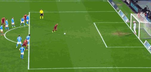 第71分钟,韦斯利造点,马伦主罚命中,罗马2-1