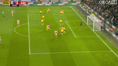第5分钟,萨卡禁区插上头球破门,阿森纳1-0领先狼队