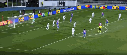 第14分钟,萨尔破门,但是因队友越位在先被判无效