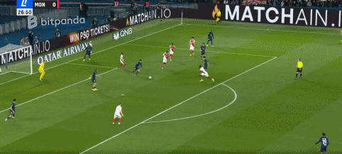 半场战报:巴黎0-1摩纳哥,阿克利乌什破门,巴洛贡送助攻
