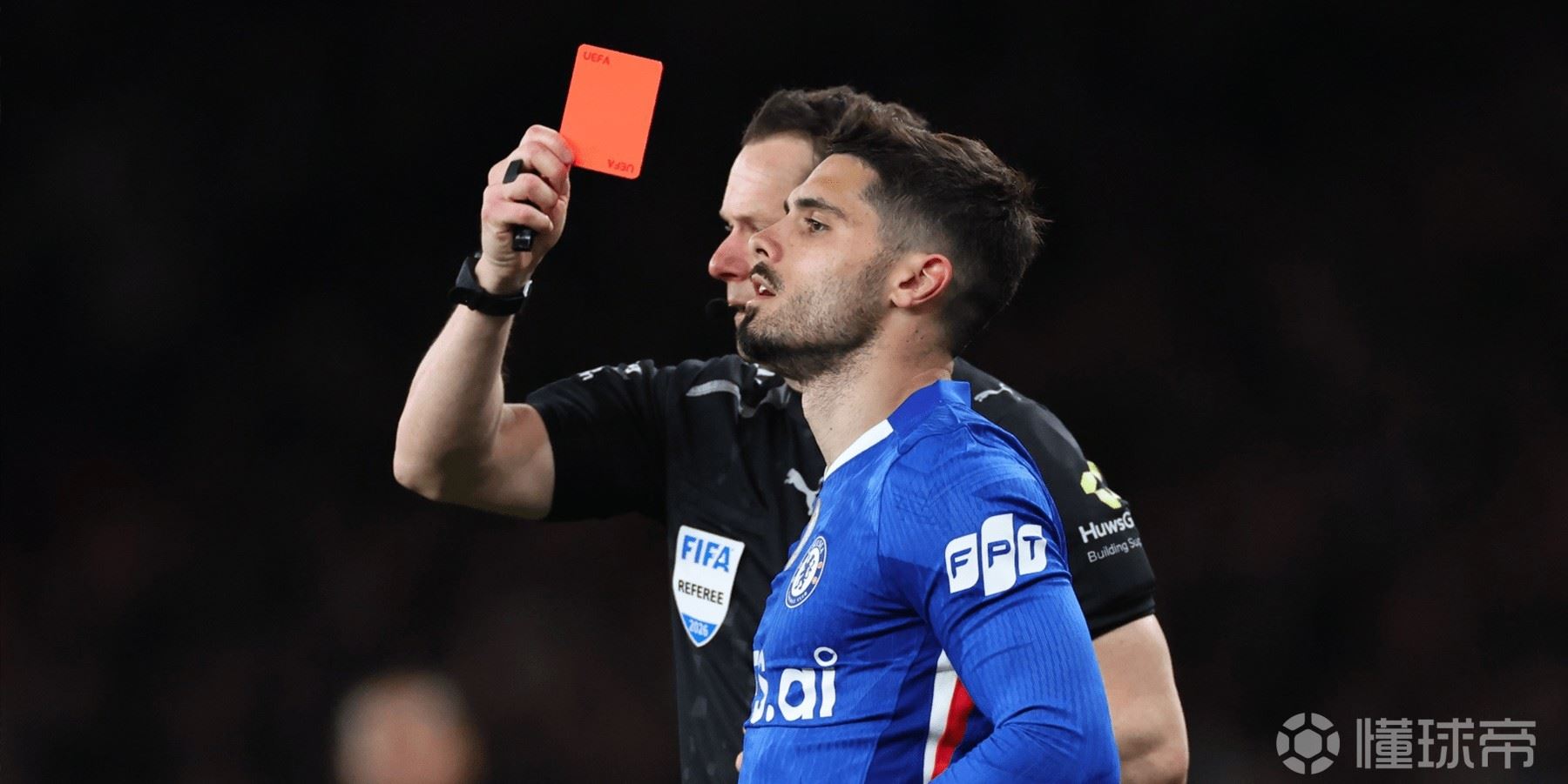 本赛季切尔西在联赛中已吃7张红牌,英超单赛季历史纪录是9张
