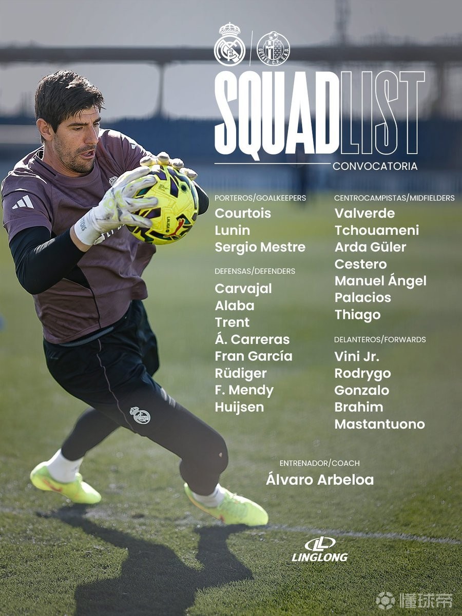 皇马战赫塔费大名单:姆巴佩、卡马文加缺阵,赫伊森回归