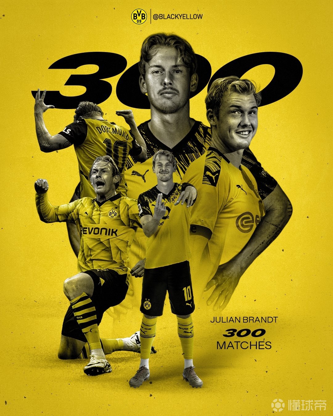 队史第20人,布兰特达成多特300场里程碑