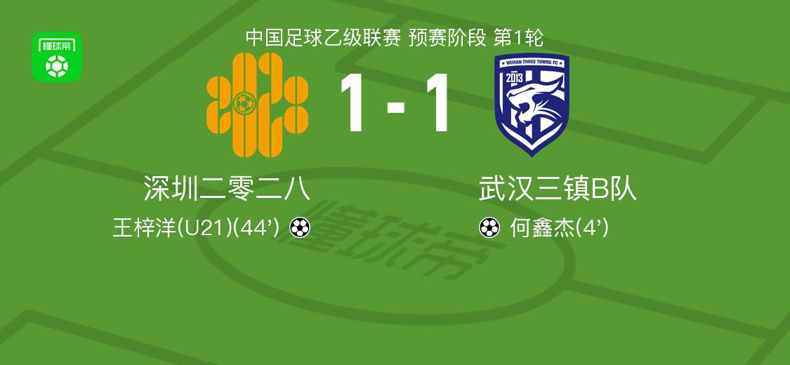 深圳二零二八1-1武汉三镇B队,何鑫杰破门,王梓洋扳平