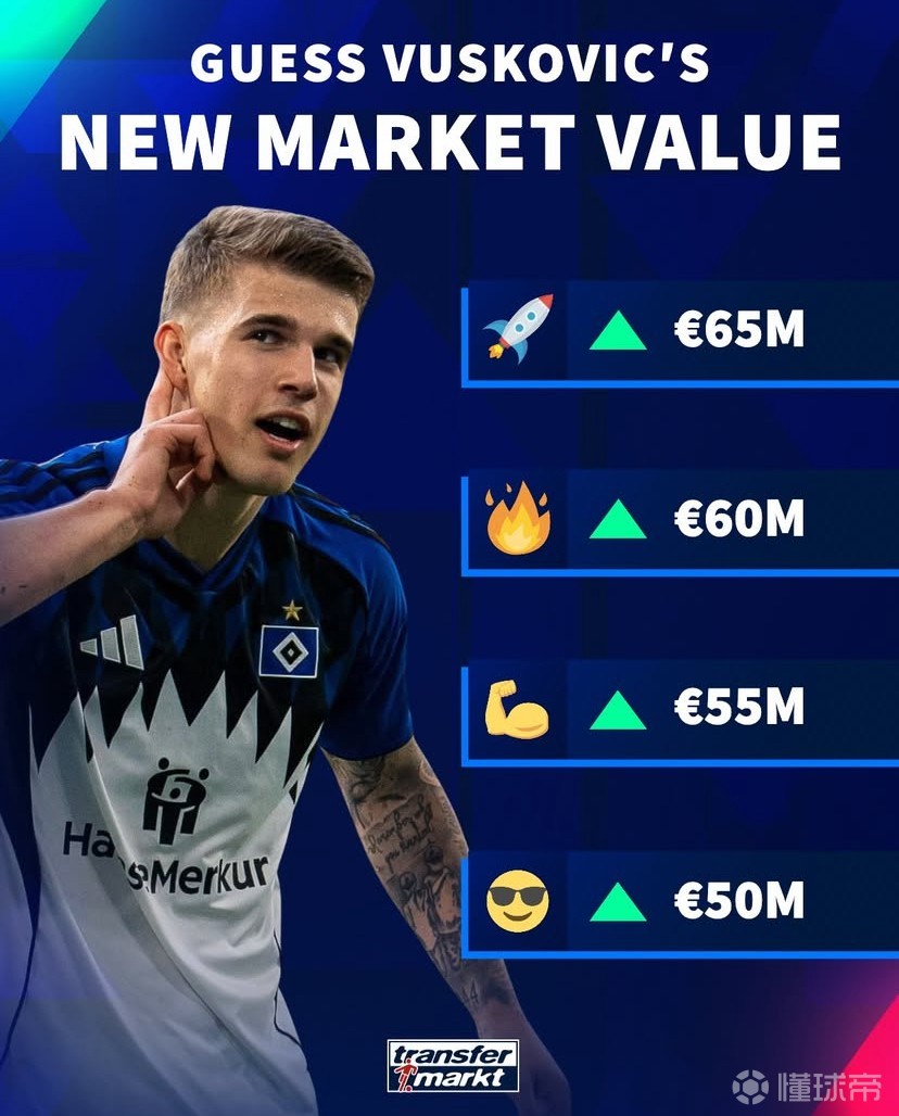 德转预热卢卡-武什科维奇身价更新:最高涨至6500万欧元