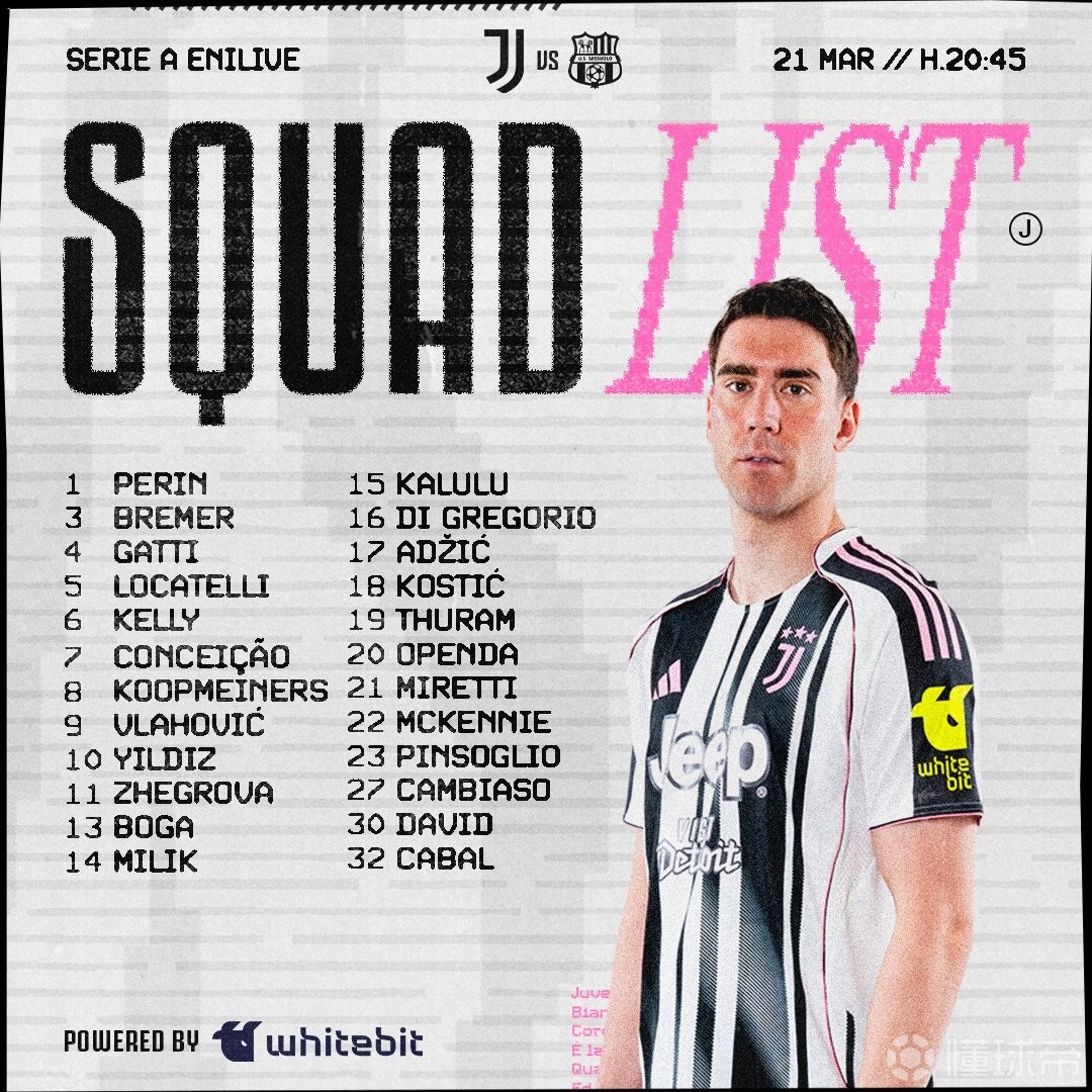 尤文主场战萨索洛名单:弗拉霍维奇复出,伊尔迪兹、戴维在列