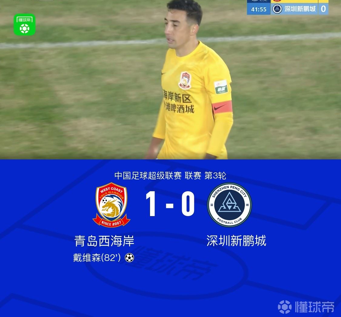 西海岸1-0新鹏城,戴维森破门+中柱,刘世博多次神扑