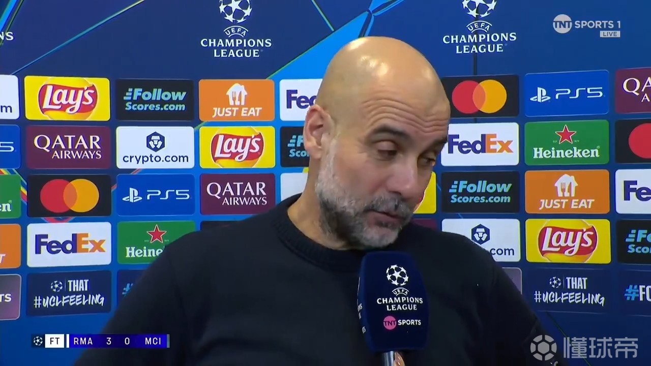 瓜帅教练生涯第3次欧冠淘汰赛首回合落后3球,此前2次均未逆转