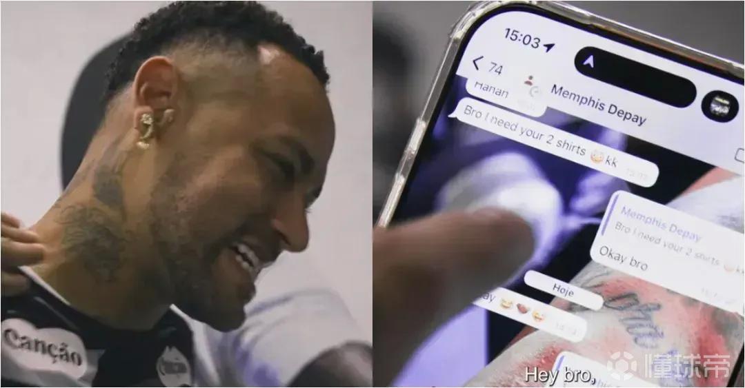 友好互动,内马尔与德佩赛前互发短信,德佩还向其索要球衣