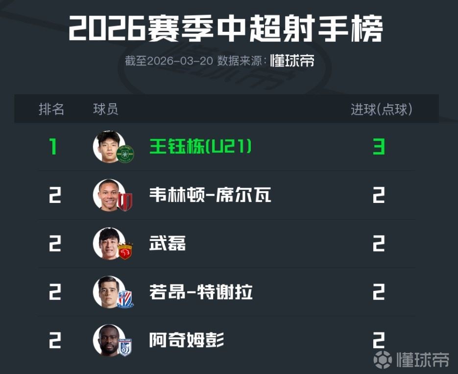 延续上赛季良好发挥,王钰栋2场比赛打进3球暂领跑射手榜