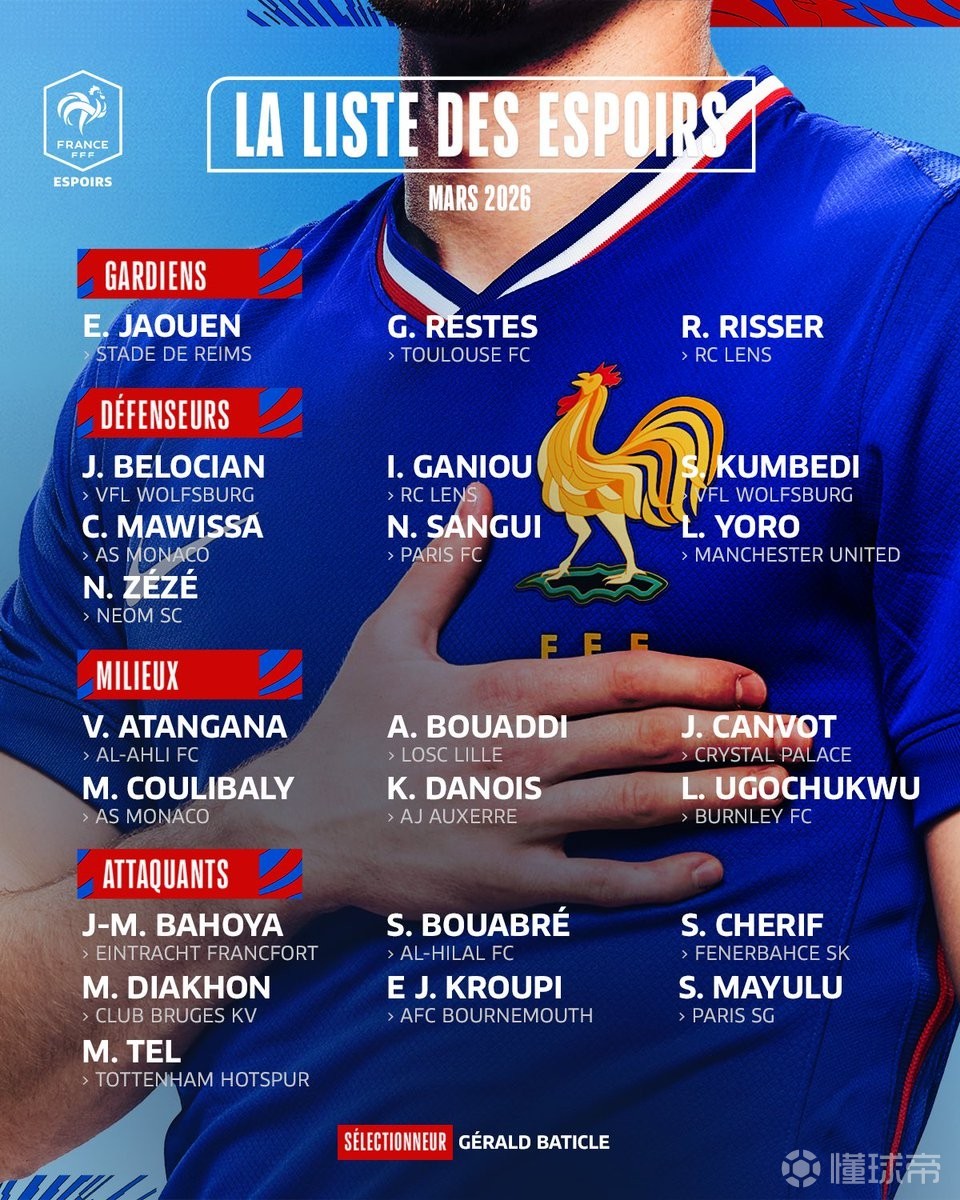 法国U21新一期大名单:约罗、克鲁皮、马尤卢、特尔在列