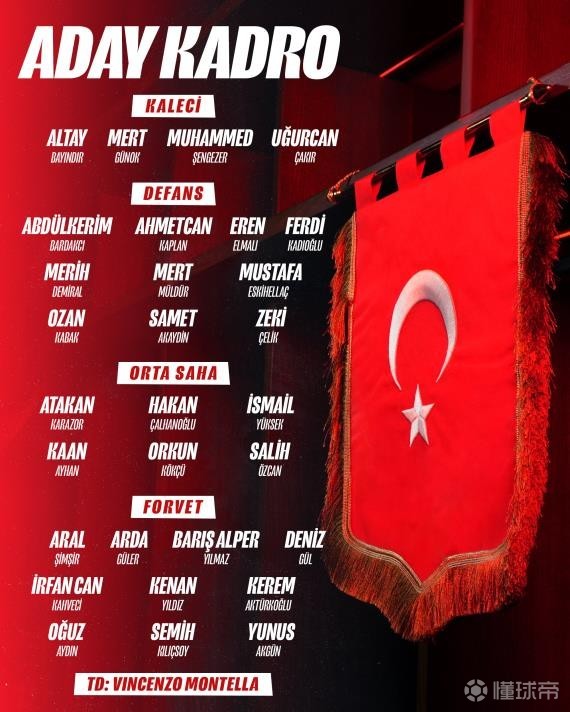 土耳其大名单:恰20领衔,居莱尔、伊尔迪兹、巴因迪尔在列