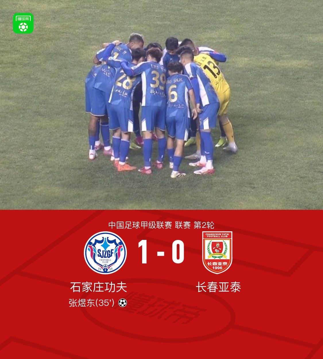 石家庄功夫1-0长春亚泰,张煜东破门,郭凌淄送助攻